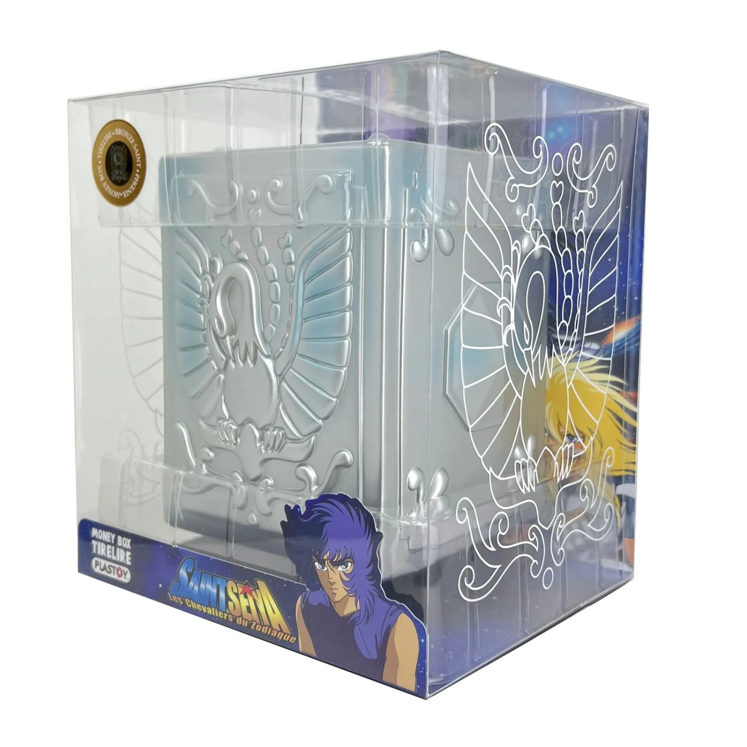 Plastoy presenta dentro de su línea de productos esta hucha con la forma de las cajas de Pandora donde los Caballeros del Zodíaco guardaban la armadura. Esta caja tiene el símbolo de Ikki, el Fénix.