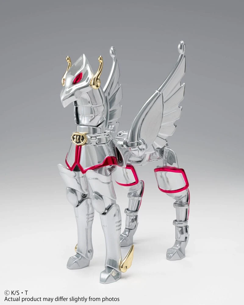 La figura Saint Seiya Pegaso Myth Cloth 20º Aniversario presenta una gran variedad de puntos de articulación, porque permite colocarla en una amplia gama de poses. Está hecha de plástico de alta calidad y está pintada a mano con colores vivos.