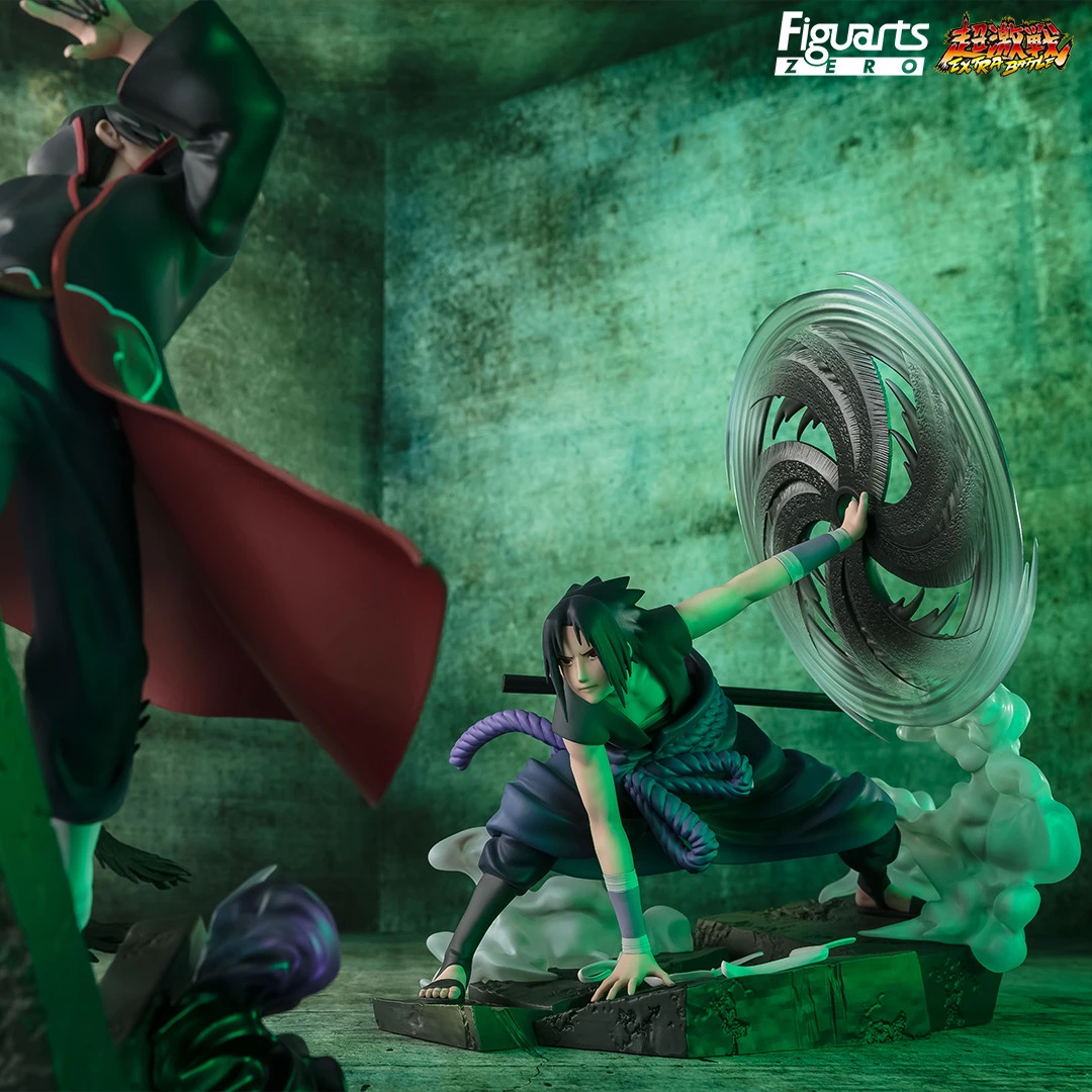 Tamashii Nations presenta, dentro de la colección Figuarts Zero, la figura de Sasuke Uchiha -The Light & Dark of the Mangekyo Sharingan- Version Extra Battle. Mide 20 cm y está basada en el personaje del anime «Naruto Shippuden». Incluyen efectos, además, puedes exponerla junto a la figura de Itachi Uchiha para representar la escena de la batalla (se vende por separado).
